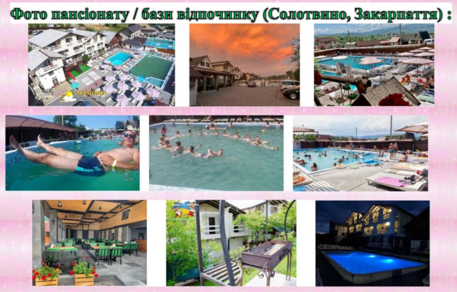 Эффективная альтернатива всем морям - Солотвинские лечебные солёные озёра и бассейны с рапой. Закарпатский летний загар приравнивается к южному по устойчивости сохранения. Плюс неповторимый колорит гуцульских Карпат и румынского приграничия. Приглашаем Вас в оздоровительный тур к самому солёному курорту Украины - пгт. Солотвино (Закарпатье).