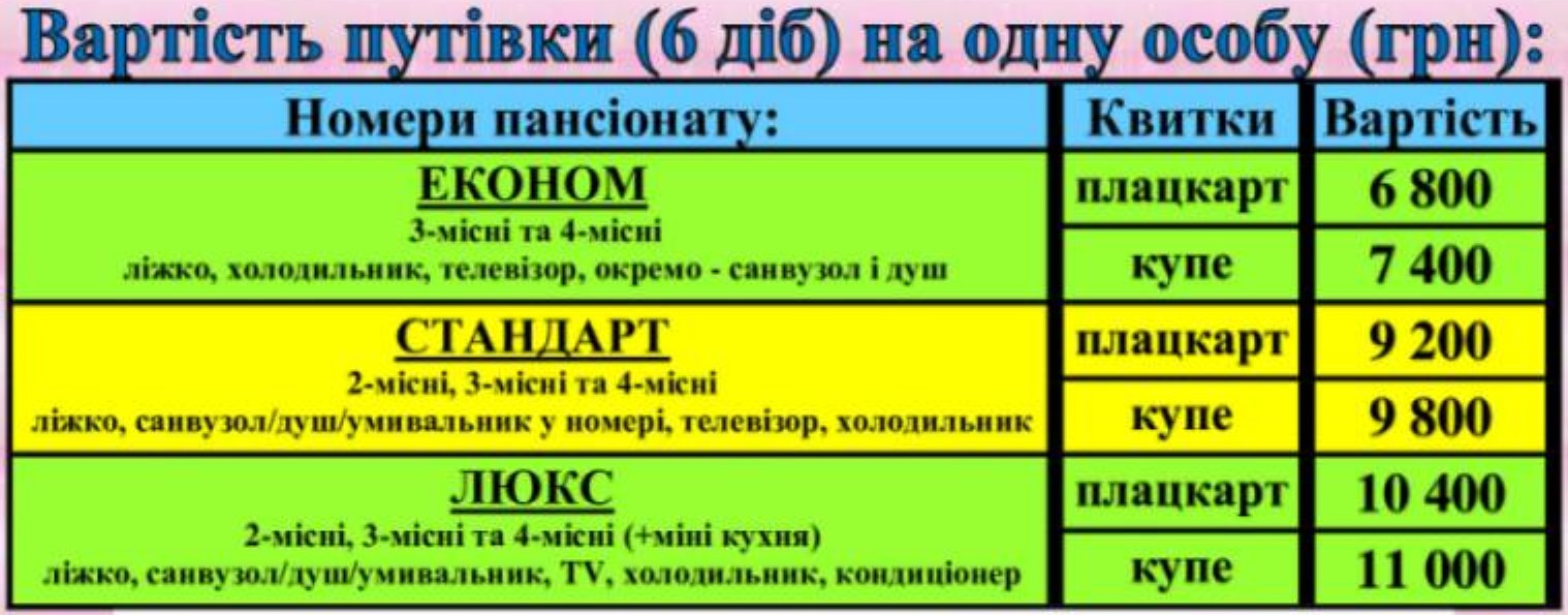 - проезд поездом до Мукачево и автобусом в Солотвино и в обратном направлении;